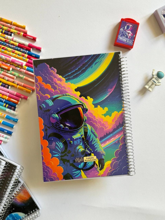 فنری با کیفیت و سایز مناسب داره ،۸۰ برگه ،کاغذ هشتاد گرم ،خط آبی ،مجلد با کیفیت طلق پرسی