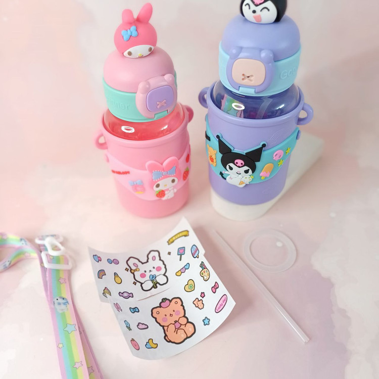 نی داره برای نوشیدن آسان ،بند بلند داره برای حمل راحت ،قفل و واشر داره برای ایمنی از نشتی ،یه ورق استیکر داره که زیباترش کنی
