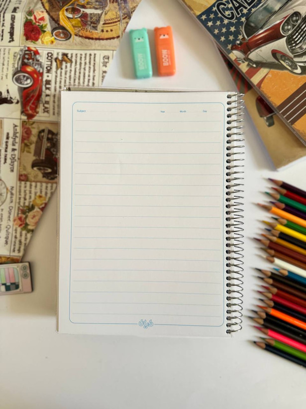 فنری با کیفیت و سایز مناسب داره ،۸۰ برگه ،کاغذ هشتاد گرم ،خط آبی ،مجلد با کیفیت طلق پرسی
