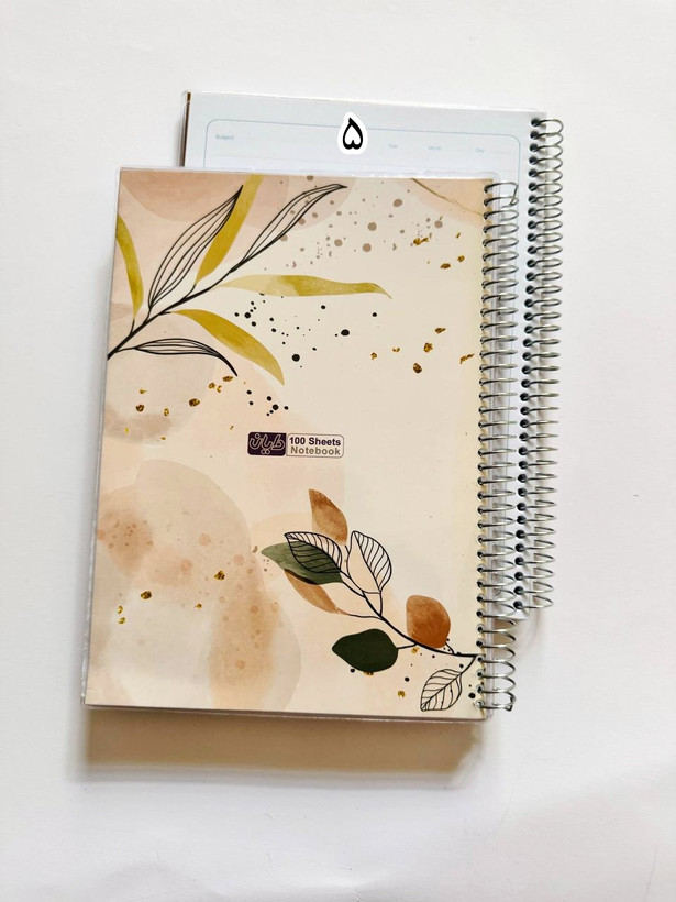 فنری با کیفیت و سایز مناسب داره ، ۱۰۰برگه ،کاغذ هشتاد گرم ،خط آبی ،مجلد با کیفیت طلق پرسی