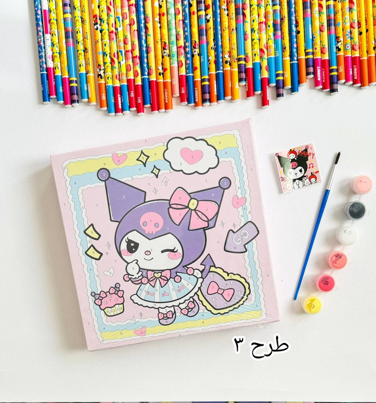 بوم ۲۰ در ۲۰ طراحی شده و کد گزاری که بهمراه رنگ مخصوص و شماره گزاری شده که مثل گواش غلیظ هستند و یک قلمو